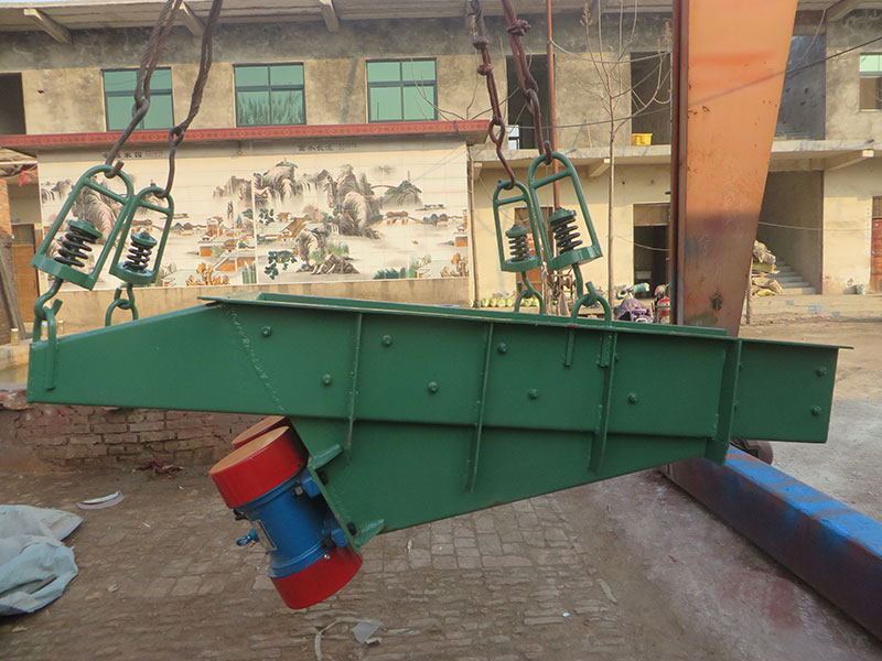 GZG系列振動(dòng)給料機(jī)是由給料槽、振動(dòng)電機(jī)和減振系統(tǒng)等組成。該系列給料機(jī)是采用振動(dòng)電機(jī)作為振動(dòng)源,固定在給料槽上的兩臺(tái)相同型號(hào)的振動(dòng)電機(jī)做相反方向自同步旋轉(zhuǎn),振動(dòng)電機(jī)所帶的偏心塊在旋轉(zhuǎn)時(shí)各個(gè)瞬間位置所產(chǎn)生的離心力之分力沿拋擲方向作往復(fù)運(yùn)動(dòng),使支承在減振器上的整個(gè)機(jī)體做直線振動(dòng),使物料在給料槽內(nèi)被拋起的同時(shí)向前作直線運(yùn)動(dòng),物料從入料端落入給料槽后,迅速前進(jìn),從而達(dá)到運(yùn)輸物料之目的。適用于貯料倉(cāng)和料斗下快速排料或連續(xù)均勻地把物料輸送到受料裝置中,它廣泛應(yīng)用于冶金粉末、化工、肥料、磨料、醫(yī)藥、糧食、陶瓷、煤炭、耐火材料、建筑材料等行業(yè)。